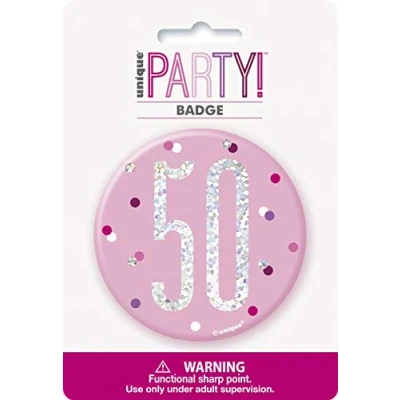 PACKAGE INCLUDES: Pink and silver number "50" birthdya badge - 1 Pc. PERFECT FOR BIRTHDAY PARTY: This badge is ideal for the guest of honour to wear on their special day. Simply pin the badge to clothing or add to a gift bag. DURABLE: This button pin badge is durable enough to use CREATE THE LOOK: Combine with other Glitz Pink & Silver Birthday party supplies., Manufacturer: Unique