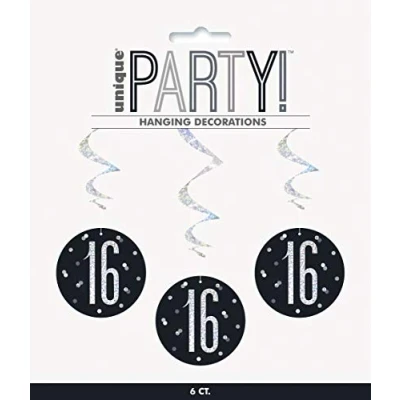 PACKAGE INCLUDES: 6 prismatic black 16th birthday hanging swirls. ATTRACTIVE DESIGN: Create an eye-catching party room decoration with these hanging decorations. PERFECT FOR BIRTHDAY: These swirls are ideal for 16th birthday party and matches them with other party supplies and decorations. DURABLE QUALITY: These swirls are made of durable foil and cardstock that is strong enough to reuse for the next party. EASY TO USE: These swirls are easy to assemble and easy to use, just simply hang this on the wall or ceiling and it will surely create a fantastic party decoration., Manufacturer: Unique Party