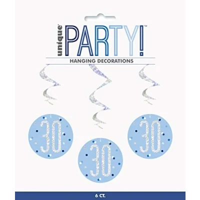Unique 83798 Blue Prismatic 30th Birthday Hanging Decorations,32" 6 Pcs, Age 30
