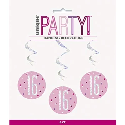 PACKAGE INCLUDES: Pink and silver "16" hanging swirl decorations - 32" - 6 Pcs. PERFECT FOR BIRTHDAY PARTY: Perfect addition to your birthday decoration spicing up your venue. REUSABLE: These hanging sworls are made of foil and are durable enough to be used many times in different party occasions. BPA-FREE: These are BPA-free and totally safe to use., Manufacturer: Unique