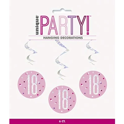 PACKAGE INCLUDES: Pink and silver "18" hanging swirl decorations - 32" - 6 Pcs. PERFECT FOR BIRTHDAY PARTY: Perfect addition to your birthday decoration spicing up your venue. REUSABLE: These hanging sworls are made of foil and are durable enough to be used many times in different party occasions. BPA-FREE: These are BPA-free and totally safe to use., Manufacturer: Unique