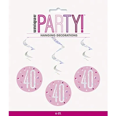 PACKAGE INCLUDES: Pink and silver "40" hanging swirl decorations - 32" - 6 Pcs. PERFECT FOR BIRTHDAY PARTY: Perfect addition to your birthday decoration spicing up your venue. REUSABLE: These hanging sworls are made of foil and are durable enough to be used many times in different party occasions. BPA-FREE: These are BPA-free and totally safe to use., Manufacturer: Unique