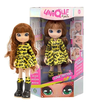 Unique Eyes Love Tatoo with a brand new and amazing look! They all wear different and super fashionable clothes! Colorful tattoos for trendy little girls are included. Enjoy trying all the tattoos in the package to be fashionable just like your Unique Eyes! In addition to Sophia there are also Amy - Rebecca - Victoria The magical eyes of Unique Eyes always follow your gaze!