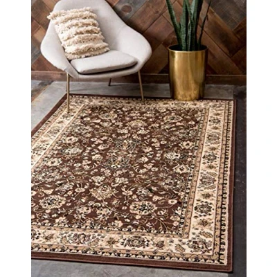 Contains colors Brown, Cream, Light Brown, Black Machine Made This area rug measures 5' 0 x 8' 0 (244cm x 155cm) This rug is stain resistant, easy to vacuum, and perfect for any room and decor.
