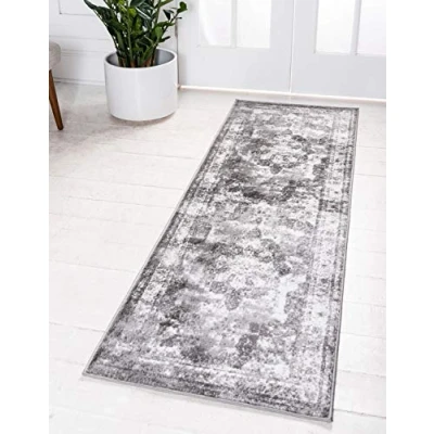 Unique Loom Sofia Collection Area Rug Traditional Vintage Rug, French Inspired Home Décor (2' 0 x 13' Runner, Gray/Light Gray)