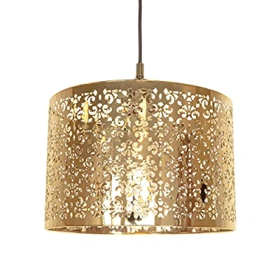 Moroccan style metal non-electrical circular pendant shade with intricate laser-cut decoration creating a stunning light effect against the wall. Finished in shiny gold plated and available in several other colours. The product dimensions are: Height - 19cm, Depth - 29cm, Width - 29cm. Maximum wattage allowed is 60w. Please note that ceiling rose and cable is not included - pendant shade only being sold. Complete with shade reducer ring allowing for most lamp bases - B22/BC, E14/SES and E27/ES. Light bulb not included., Weight: 1.984160358 pounds, Manufacturer: Happy Homewares