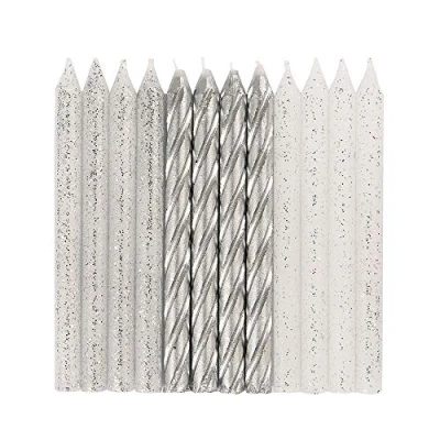 Pack of 24 Silver & Glitter Spiral Birthday Candles Cake candles measure 2.5" (6cm) in height Great for any birthday party or milestone celebration Quick and easy way to decorate any type of cake Combine with other birthday party supplies from Unique Party, Manufacturer: Unique Party
