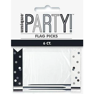 Unique Party 83913 Glitz Black & Silver Cupcake Toppers, Pack of 6