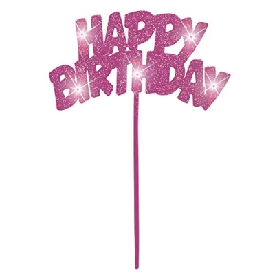 1 Pink Flashing Happy Birthday Cake Decoration Happy Birthday Light Up Decoration measures approximately 20cm x 15cm (8" x 6") Cake Pick Decoration features pink sparkly "Happy Birthday" text and flashing LED lights Birthday cake topper can add festive sparkle to sweet treats at a girls birthday party, or to a birthday bouquet or table centrepiece Coordinate with other birthday party supplies and party decorations from Unique Party, Manufacturer: Unique Party