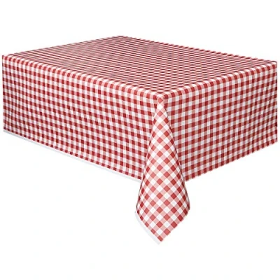 RECTANGULAR PLASTIC TABLE COVER: Durable and waterproof, our red gingham pattern table cover adds a touch of elegance while protecting your table from spills and stains at parties and events. CLASSIC RED GINGHAM PATTERN: Add a timeless charm to any gathering with this attractive and versatile pattern, perfect for picnics, barbecues, family reunions, and more. IMPRESSIVE SIZE: Amply sized to fit most rectangular tables, this table cover offers complete coverage and makes cleaning up after your event a breeze. 1 PIECE FOREASY USE: Hassle-free setup with a single table cover, ensuring a consistent and beautiful presentation while saving time and effort on party preparations. IDEAL FOR PARTIES & EVENTS: Enhance the atmosphere and make your special occasions even more memorable with this stylish and functional red gingham pattern rectangular plastic table cover., Manufacturer: Unique