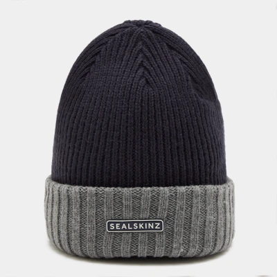 ENDURANCE ACCESSORIES: The Bacton Beanie is designed for the outdoor enthusiast, offering a waterproof, breathable solution for cold weather adventures. Its three-layer AQUASEALZ technology ensures your head stays dry, while the roll cuff design adds style and versatility. Ideal for hiking, camping, or city exploration, this beanie is a reliable companion. DURABLE: Constructed from a blend of acrylic and polyester, the Bacton Beanie is built for durability and all-weather performance. Its moisture-wicking properties and hydrophobic membrane make it suitable for winter, ensuring warmth and dryness. The materials' resilience also ensures long-lasting wear, making it a practical choice for seasonal outdoor activities. THE VERY BEST: Available in a variety of block and two-tone colours, the Bacton Beanie caters to personal style while maintaining its high-performance features. Whether you prefer subtle hues or bold statements, there's a Bacton Beanie to match your outdoor gear and personal aesthetic. EASY CARE: Maintaining the Bacton Beanie is straightforward. Wash it at 30ºC/85ºF, let it drip dry, and avoid dry cleaning, ironing, or bleaching. Following these care instructions ensures the beanie remains in excellent condition, ready for your next adventure. OUR BRAND: SEALSKINZ is dedicated to crafting the finest waterproof accessories, with over twenty years of expertise. Our range includes socks, gloves, and hats designed for outdoor enthusiasts who face the elements head-on. Trust in SEALSKINZ to keep you dry, warm, and comfortable, whether you're reaching the peak of Everest or enjoying a casual city walk.
