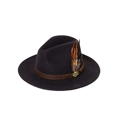 A WONDERFUL COMPLIMENT FOR COUNTRY ATTIRE: The Danby Wool Felt Fedora Hat is designed with the aesthetics of country style in mind. STRIKING CONTRAST FEATHER ARRANGEMENT: Each Danby Fedora is finished beautifully with a contrasting arrangement of game bird feathers. SUEDE LEATHER HEAD BAND: The cap of our wool felt hats is surrounded by a charming narrow suede leather band. C-CROWN FEDORA HAT: Designed with the classic C crown that makes Fedoras durable and malleable. AVAILABLE IN A HOST OF COLOURS: Pink your own colourful fedora hat or select one of our more classic country colours.