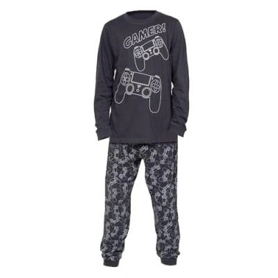Amazon 【Convenient Designs】 Our two-piece t-shirt and pyjama set from the Noroze collection is warm, cosy, and ideal for your loved ones. The ideal motivation for every night. Our cosy round neck, cap sleeve t-shirt and pair of pants with two pockets,100% cotton pyjama set. Ideal for Fall, winter, spring, and summer. Better sleep is made possible by plush and cosy materials. 【Material & Sizes】 Using 100% Cotton, which is gentle on the skin, light and sweat-wicking, high-quality and long-lasting, and For youngsters ages 5 to 13, Please refer to the sizing chart since there are several sizes for each step. Please select a size larger than what is advised if your child is stronger or taller than typical or if you want them to have room for growth. 【Multiple scenes】 Not only is it appropriate for sleeping, but it may also be worn for regular activities like home parties, drag shows, and family outings. Perfect for usage as pyjamas, sleepwear, casual clothing, vacation clothing, beachwear, pyjama parties, house clothing, or outdoor clothing. It may be presented to kids as gifts for their birthdays, Christmas, Halloween, etc. This is a good gift selection. 【Cool Design】 Crew-neck tee and Elastic Waist Side Pocket Trouser, high quality, comfortable and breathable Kids Unisex Cap sleeve Camouflage Skull Headphones, Eat Sleep, Gaming Control Game Print Shirt & Gaming Control Bottom PJ Set, The skeleton design will immerse your little ones in the festive spirit. 【Washing Care】 Wash inside out, Wash with Silimar Colours, Hand wash or machine wash, do not soak for a long time, do not bleach, wash in cold water