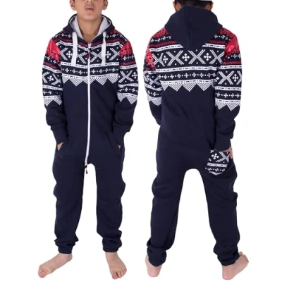 【Spooktacular Halloween Design】 NOROZE Aztec Onesie, Skeleton Halloween Fleece Hooded Onesie Jumpsuit is a must-have for Halloween enthusiasts. Features an eye-catching Aztec and skeleton design that's perfect for Halloween. Full-body coverage with an attached hood to complete the bone-chilling look. Detailed skeleton and Aztec print on both front and back for a realistic and sinister appearance. People embrace the spooky and supernatural elements of folklore and mythology. 【Cozy Fleece Material】 Crafted from premium fleece, 52% Cotton, 48% Polyester. This onesie jumpsuit offers unrivalled warmth and softness. Stay snug and cosy during those chilly Halloween nights while enjoying a stylish and spooky look. 【Versatile Halloween Wear】 Whether you're trick-or-treating, attending a costume party, or simply lounging at home, this hooded onesie is your go-to choice. Its versatile design and comfortable fit make it perfect for both indoor and outdoor Halloween festivities. 【Features】 The attached hood adds an extra layer of Halloween fun. NOROZE knows that Halloween is all about convenience too. This long-sleeved jumpsuit features a front zipper for easy dressing and undressing, as well as 2 front and back pockets to keep your essentials handy. The hood is lined with a contrasted soft textile, and the cuffs, hem and pocket trims are matching and ribbed for both aesthetics and comfort. The double Zip Puller is branded and chunky. 【Color and Sizes】 NOROZE Aztec Onesie, Skeleton Fleece Hooded Onesie Jumpsuit is available in Black Aztec, Charcoal, Navy, Red, Skeleton Black, Grey, Royal Blue, Skeleton Silver Grey, and Wine colour. All sizes ranging from 5 years to 13 years are available.