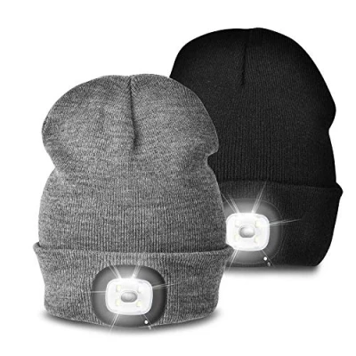 Unisex LED Lighted Beanie, USB Rechargeable Headlamp Hat, Cap with Light Hands Free Head Torch, Winter Warm Gifts for Men and Women