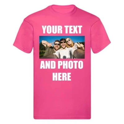 Unisex Personalised T Shirt Custom Print Tee Your Own Photo/Design and Text Fuchsia