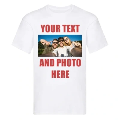 Unisex Personalised T Shirt Custom Print Tee Your Own Photo/Design and Text White