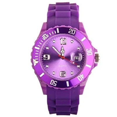 UNISEX SILICONE RUBBER JELLY WRIST WATCH WITH DATE FOR BOYS GIRLS GIFT (purple)