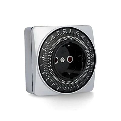 UNITEC Mechanische Tages Zeitschaltuhr, für Innengebrauch, ansprechende quadratische Form, analog, silber, 15 Minuten Abstände einstellbar
