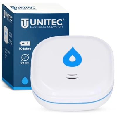 Mini water detector with 10 year battery Alerts when water leaks in case of pipe and hose damage or penetrating rain in the kitchen, bathroom and cellar Easy and wireless installation Alarm signal: 85 dB (A) (1 meter distance) Water detection: 1 to 3 mm water depth, Weight: 0.14770971554 pounds, Manufacturer: Unitec