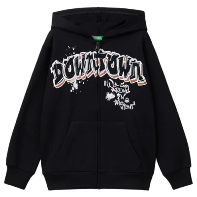 United Colors of Benetton Boy's Jacket C/CAPP M/L 3fwyc504b Cardigan Sweater, Black, 160 cm