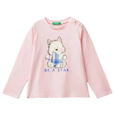 United Colors of Benetton Girl's T Shirt M/L 3P4ZG10FV Short Sleeve, Rosa, 4 Years
