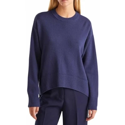 Boxy fit crewneck sweater Armholes with dropped shoulder Rounded hem front and back longer With double links detail over the edge Shaved finish with rib trim 80%wool 20%polyamide