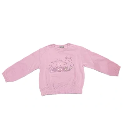 Long sleeve sweatshirt with ribbed crewneck, elastic bottom, elastic also on the bottom of the sleeve, water print and sequins embroidery 100% Cotton