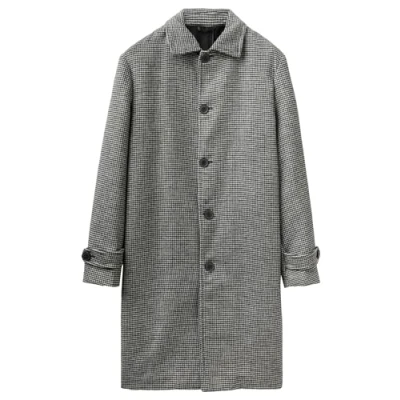Coat in soft cloth made from mixed wool with regular fit Shirt collar, button front and slit back Pied de poule pattern on the entire garment