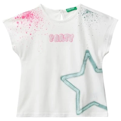 Stylish T-Shirt: Showcase your style with this United Colors of Benetton T-shirt, featuring a drop neckline and short sleeves. Perfect for a trendy party look High-Quality Material: Made of 100% non-stretchable cotton, ensuring comfort and durability for a long-lasting fit Size Options: Available in various sizes from XS to XL, designed to fit US girl's size system, and suitable for women as well Easy Maintenance: Machine washable for your convenience, making it easy to care for and maintain Versatile Design: Pair it with your favorite jeans or skirt for a casual day out or dress it up with a skirt and accessories for a special occasion