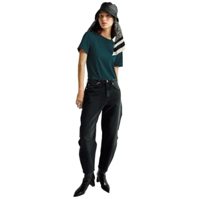Ribbed T-Shirt Regular fit Crew neck Short sleeve Embroidery in tone at the bottom
