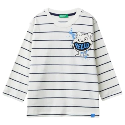 Stylish T-Shirt: Showcase your fashion sense with this United Colors of Benetton short sleeve tee, designed in a regular fit for a comfortable fit. High-Quality Material: Crafted from 100% cotton for long-lasting comfort and durability, ensuring a soft and cozy feel against your skin. Versatile Design: Featuring a crew neck collar and pull-on closure, this T-shirt is suitable for various occasions, perfect for both casual and semi-formal events. Vibrant Colors & Patterns: Add a touch of personality to your wardrobe with this Bianco colored T-shirt, adorned with fun cartoon patterns for a playful look.