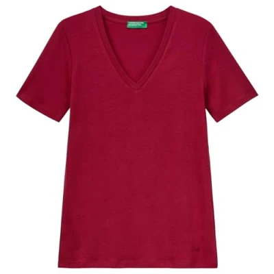 Ribbed T-shirt Regular fit V-neck Short sleeves Tonal embroidery on the bottom