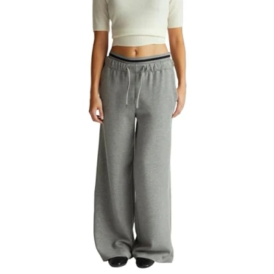 Wide leg modal trousers Hip pockets Drawstring waist and striped split rib 49% Modal 45% Polyester 6% Elastane