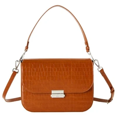 Continuous line of the new Be in medium format. New faux leather material with crocodile print. Silver satin metal and bright colours. 27(l)*21(h)*8(w)" Outer: 100% polyester. Polyurethane coating: 100% polyester. Polyurethane coating
