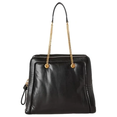 Padded Shopper bag in soft faux leather with nappa effect. Gold chain shoulder handles and textured end Zip closure decorative accessory on zip puller. Height 29 cm - Width 33 cm - Deep cm 13 Outer: 100% polyester. Polyurethane coating: 100% polyester. Filling: 100% polyester. Padding: 100% polyester