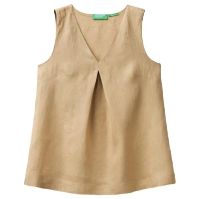 Sleeveless linen blouse with A-fit. V-neck and brim on the front. Women's shirt Brand: United Colors of Benetton