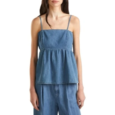 Women's denim garment with thin straps and ruffle Comfortable and elegant Excellently made product
