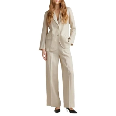 Destructured single-breasted linen jacket Soft, slightly drained fit, shoulder down, length according to the waist Pockets with thread and flap, buttons at the bottom of the sleeve, center back slit