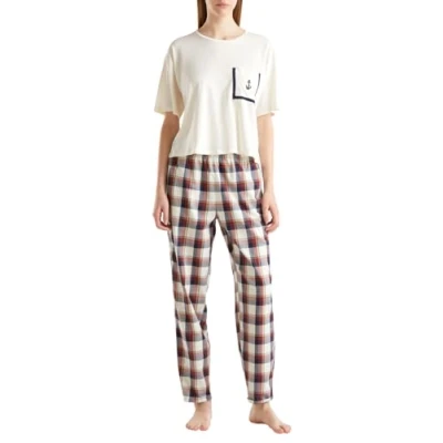 Boxy crewneck sweater, short sleeves, cotton viscose jersey warm hand, pocket with border in contrast with embroidery, logo label. 50% Cotton, 50% Viscose