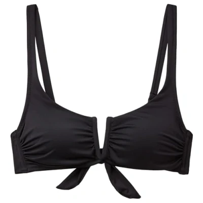 Brassiere bra with removable padding, V-shaped design with underwire in the middle, straps that can be fastened both at the neck and on the back with 4 adjustments, bow on the back to allow greater adaptability to various underbust sizes, in regenerated econyl polyamide. The garment can wear even the most abundant cups. Outer 90% Polyamide 10% Elastane Lining 82% Polyamide 18% Elastane