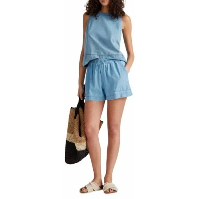 Elasticated Chambray Short Work patch pockets. 100% Cotton