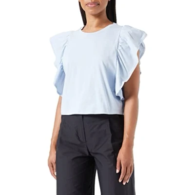Short top, cotton jersey, round neck, ruffle sleeves. 100% COTTON