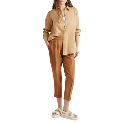 Linen cropped trousers with front pockets and tapered leg. . 100 percent linen Elastic waistband Made of durable and lightweight material Relaxed fit