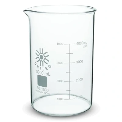 United Scientific BG1000 4000 Borosilicate Glass Low Form Beaker, 4000ml Capacity