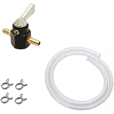 Universal Fuel Set : TAP 8MM + Petrol Hose CLAMP for Motorcycle Lawn Mower Grass Trimmer Barrel ROTOTILLER Quad Scooter Roller Motorbike PETCOCK ON/Off Inline Shut Valve Transparent Black