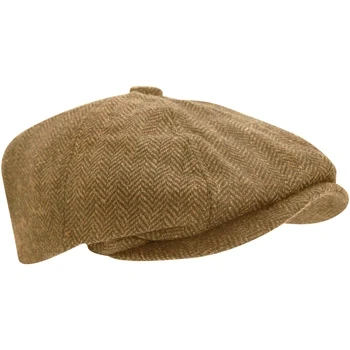 Universal Textiles Mens Wool Blend Herringbone 8 Panel Newsboy Cap (59cm) (Beige)