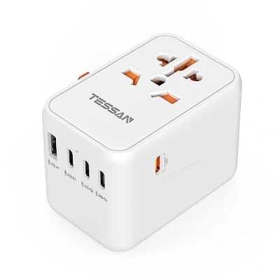 Universal Travel Adapter Worldwide, TESSAN 65W PD Fast Charger, International Plug Adaptor with 4 USB C 1 A Ports, Power for European USA UK Australia (Type C, G, A, I)
