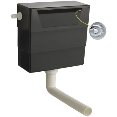 Durable Polyethylene Construction: Made from durable high density polyethylene, this toilet tank cistern offers exceptional resistance to corrosion, impact, and leaks, ensuring long-term reliability in high-use bathroom environments. Water-Saving Dual Flush: This dual flush toilet cistern kit is equipped with a dual flush mechanism that lets users choose between partial or full flush, helping reduce water waste while maintaining strong, reliable performance for everyday use. Traditional Chrome Flush Plate: This flush cistern includes a traditional chrome flush plate with a classic round design, combining timeless styling with a reflective finish to deliver smooth front flush activation and elegant functionality. Side Inlet Connection: Equipped with a convenient side inlet that simplifies installation and reduces setup time, this configuration is ideal for tight spaces and commonly used concealed toilet cistern applications. Clean, Concealed Finish: Designed to hide unsightly plumbing behind walls or inside WC furniture, this slim-profile toilet tank cistern helps create a clean, minimalist bathroom look while freeing up floor space for easier cleaning. WC Furniture Units Compatible: Perfectly suited for WC furniture units, this concealed cistern pairs easily with back-to-wall toilet pans, maximizing floor space while maintaining a clean, streamlined appearance. Dimensions: Measuring W: 303 x H: 334 x D: 136 mm, this concealed flush cistern is designed to sit neatly within WC furniture units or behind stud walls, making it ideal for space-conscious bathroom layouts. 1 Year Manufacturer's Guarantee: This 1-year guarantee reflects our commitment to quality and gives you peace of mind, knowing your concealed cistern with dual flush is backed by reliable support., Manufacturer: Balterley