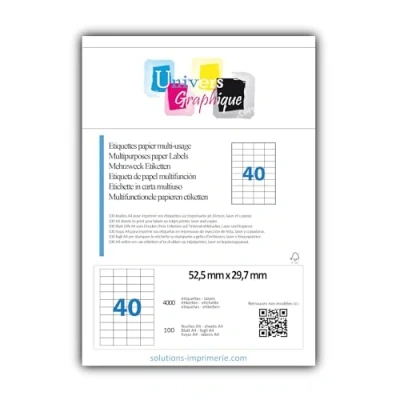 UniversGraphique, 4000 Sticky Labels on A4 Sheets, White Adhesive, 52.5 x 29.7 mm, 100 40 per Sheet